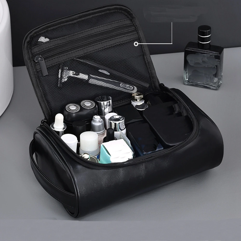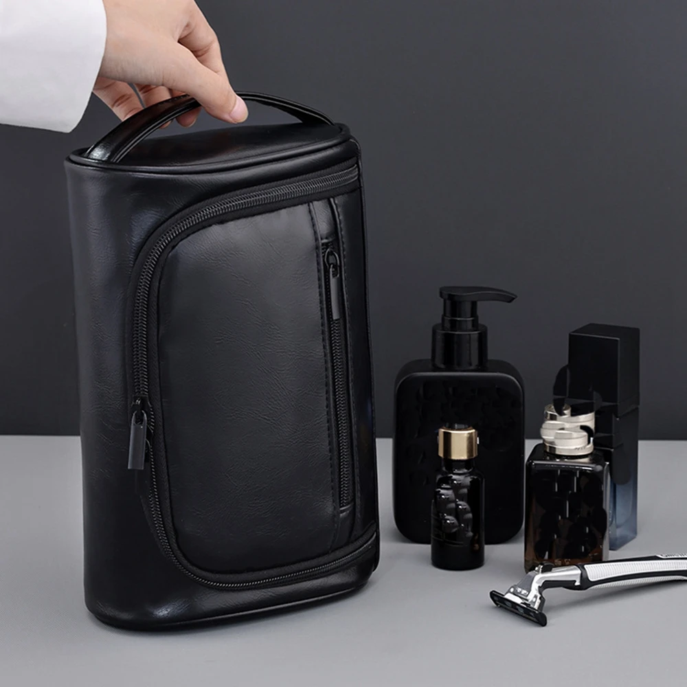 Stay organized with this men’s PU toiletry bag designed for travel and daily use, offering a large capacity to store grooming essentials, cosmetics, and toiletries, made from durable PU material for a sleek and professional look, featuring a waterproof design that protects items from spills and moisture, perfect for business trips, commuting, or home storage, with a compact yet spacious structure that fits easily into luggage or backpacks, equipped with a smooth zipper closure for secure and easy access, ideal for storing shaving kits, skincare products, and personal care items, lightweight and portable for convenient carrying anywhere, making it a practical and stylish solution for keeping your essentials organized.